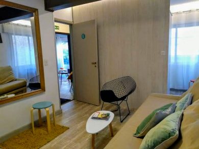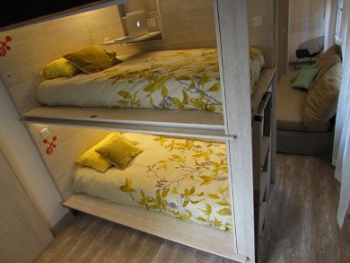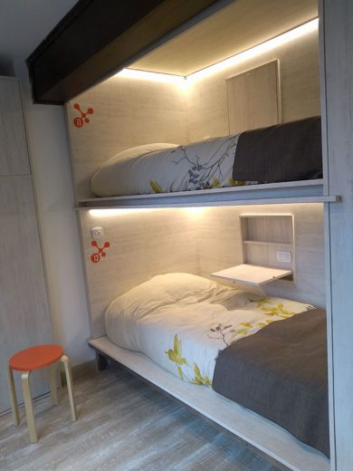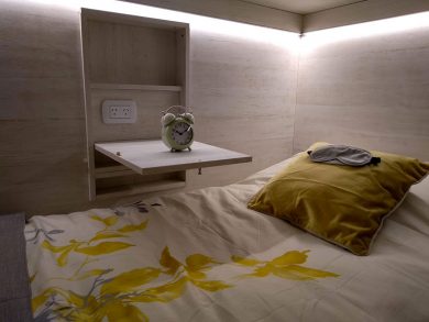 - Cuatro cápsulas de una plaza con mini-desk (+ cama extra opcional).